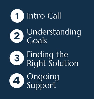 1. Introduction Call: We start with a straightforward conversation to understand where you are and determine whether there’s a good fit to work together.